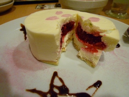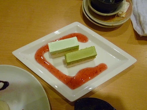 「総司と一の手作りむうす」です。抹茶味と・・・ラムネ味だっただろうか。確か。ひんやりスイーツでした。周りの赤いソースはたぶんイチゴソース。いや、あんまりつけないで食べたもんで;