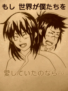 まだレポートが残ってるのに、空き時間に描きましたぁ(^^)ノシ で、写メ撮影&ケータイ機能での編集=超低クォリティー わーい、いつもどおりひっどーいww でもでも、神田好きは負けないぞ(笑) きっと、こいつらは、戦争がなかったら 絶対幸せそうに2人で笑ってたと思うんだ!! もっと別の会いかたをしてさ!!!! それで、ユウももっとデレが多かったと思う← でわでわ、たぶんこれから、こんなかんじの絵が増えると思いますが、カラーもたまにはやるんだからっ!!うん、たまには・・・・・・